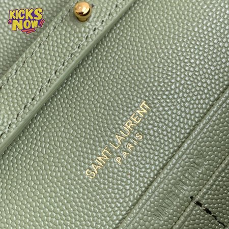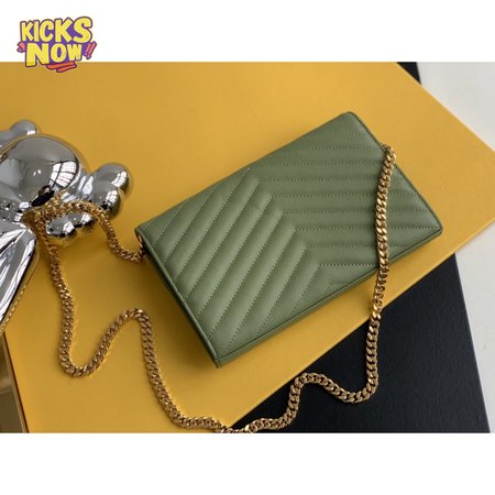 Saint Laurent Monogram Embossed Light Sage Leather Chain Wallet