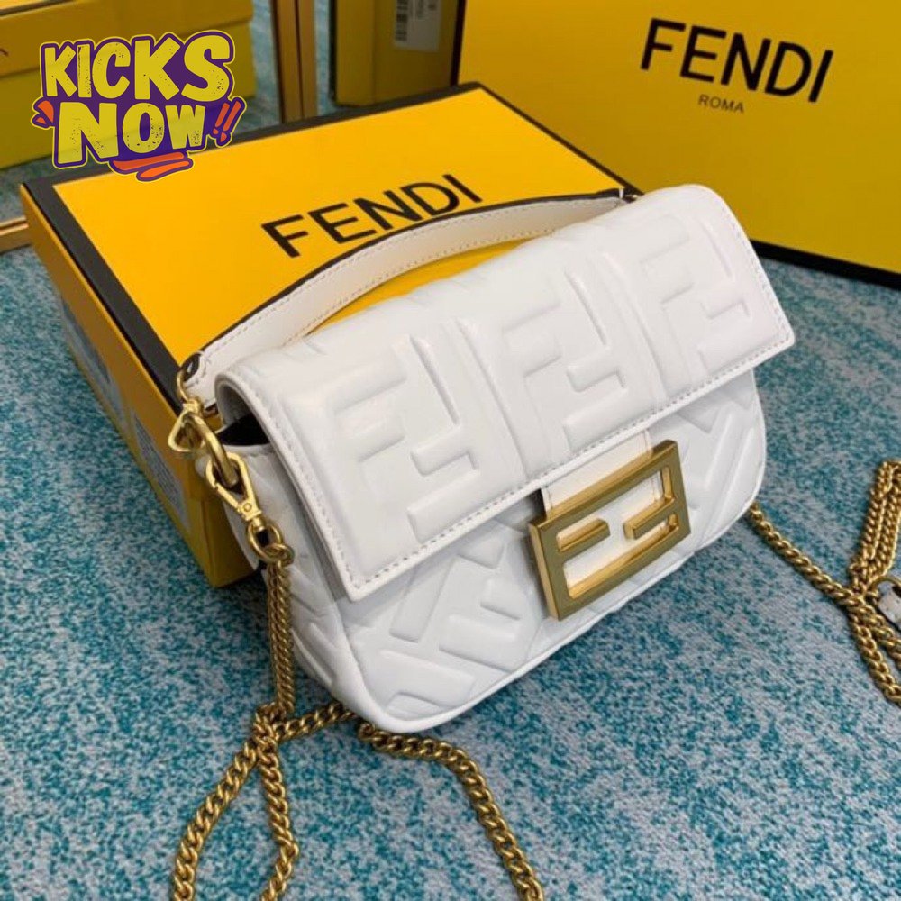 Fendi Baguette Mini White Leather Bag 8BS017A72VF15AO