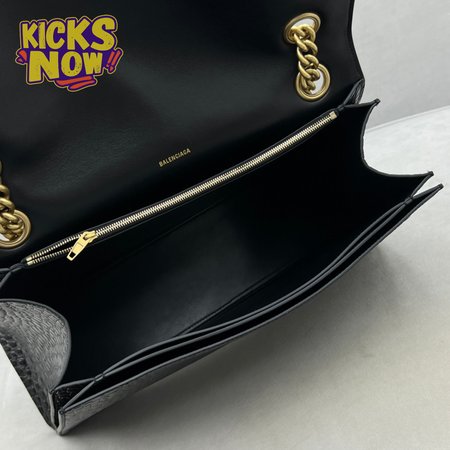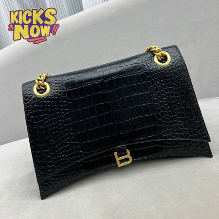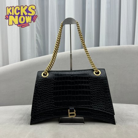 Balenciaga Crush Large Chain Bag Crocodile Embossed In Black