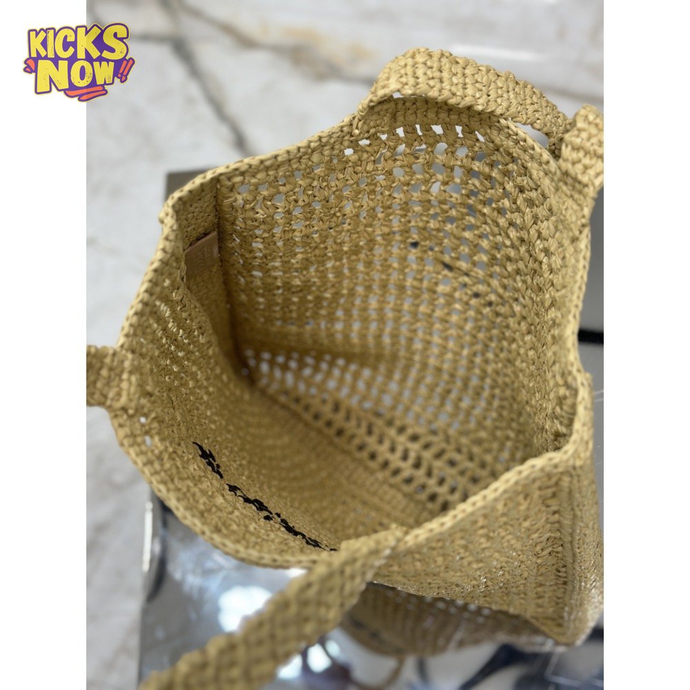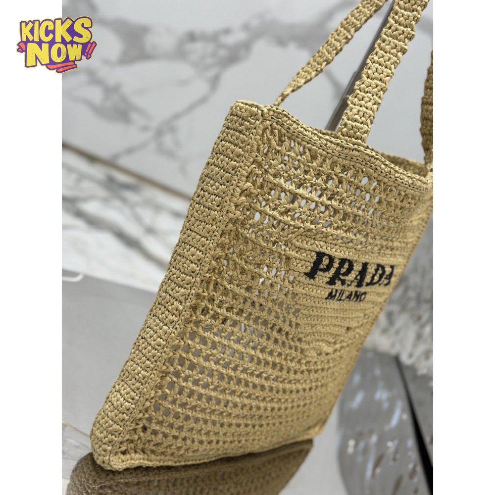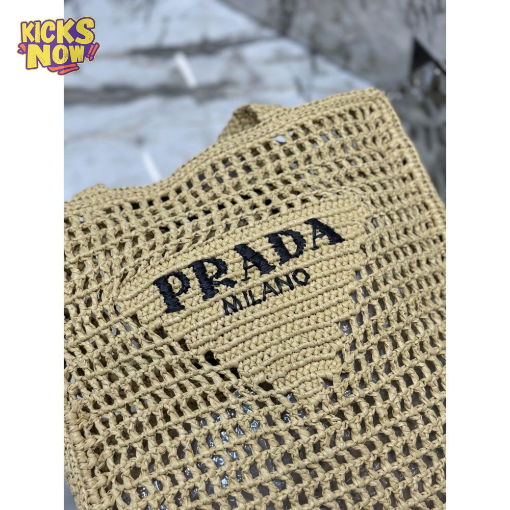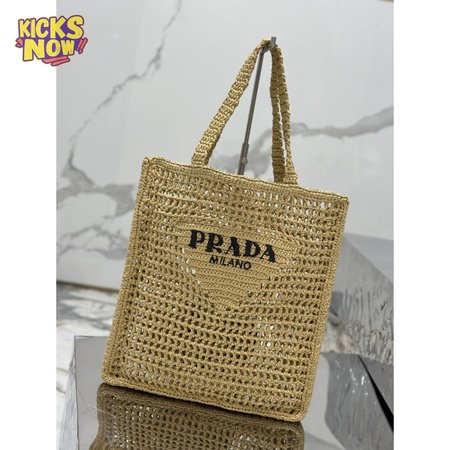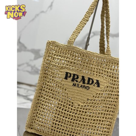 Prada Logo-Print Raffia Tote