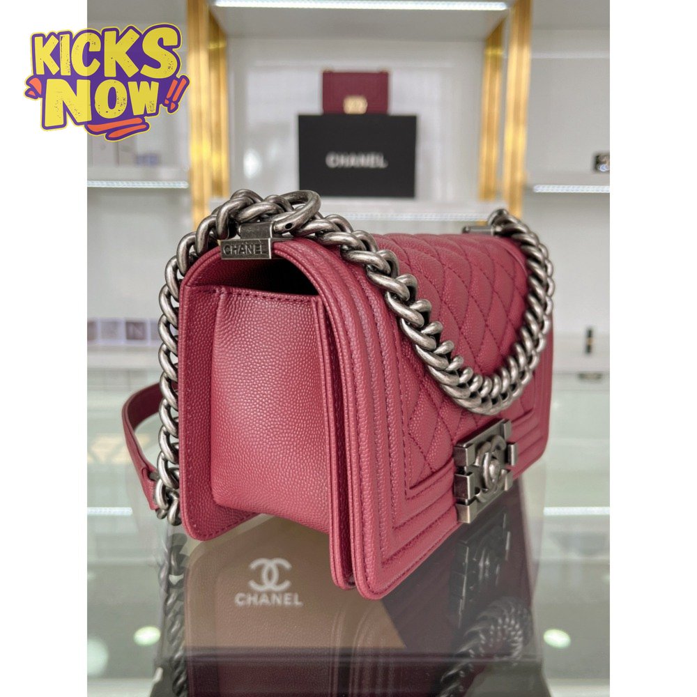 Chanel Boy Flap Quilted Diamond New Medium Red