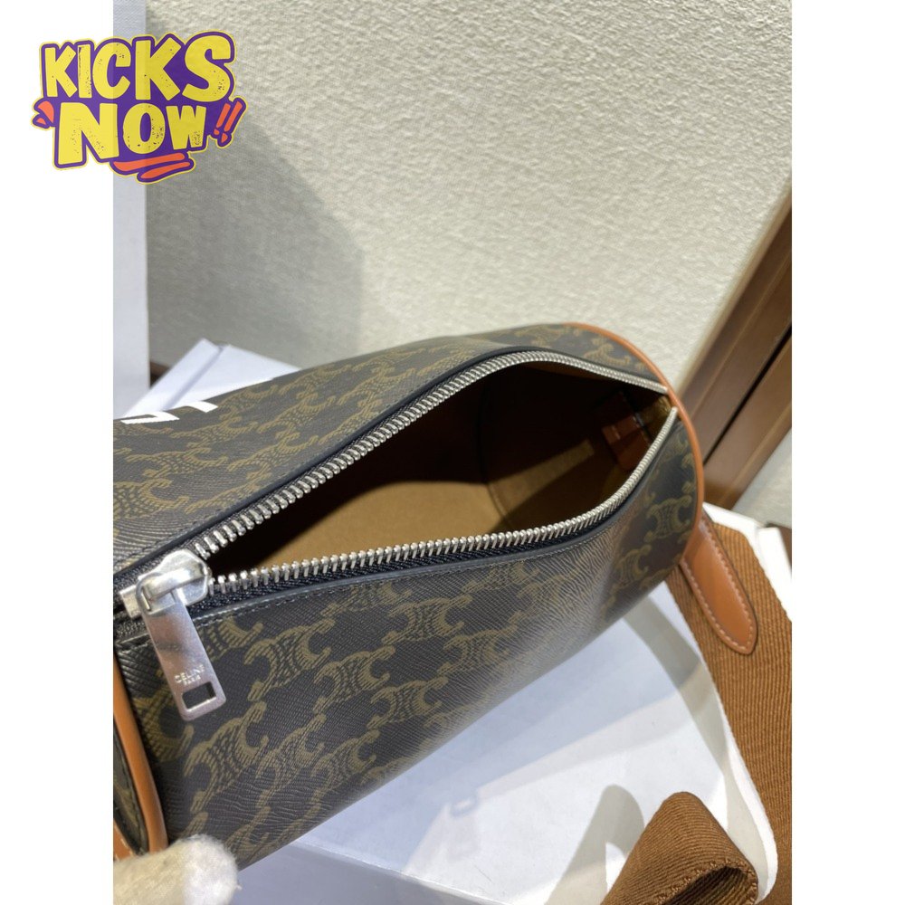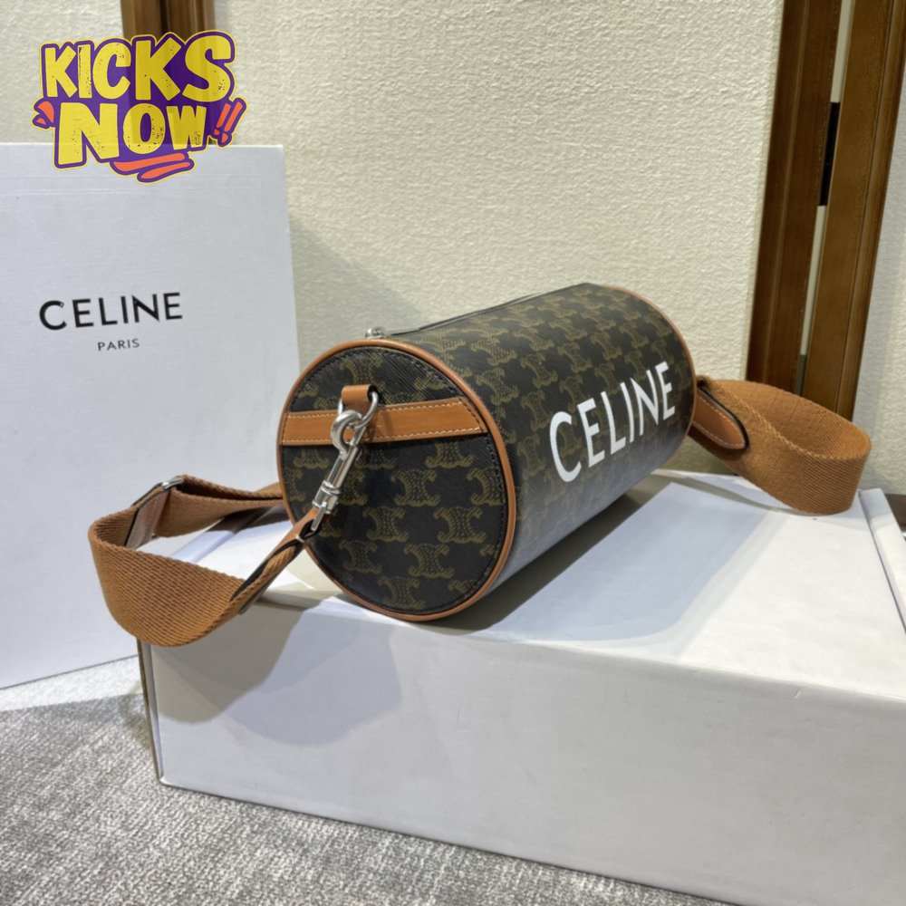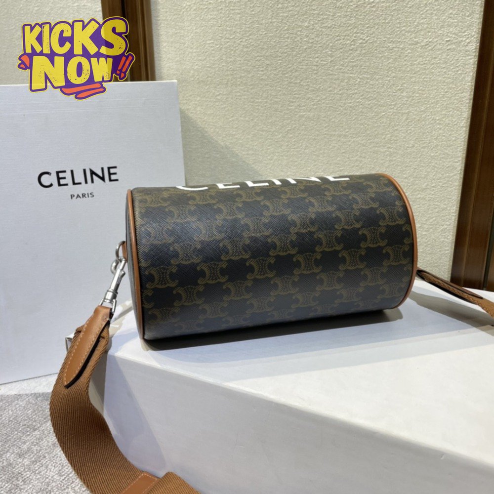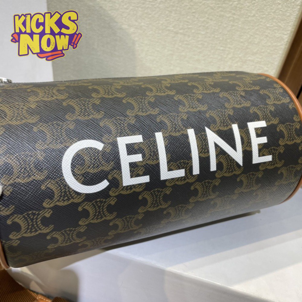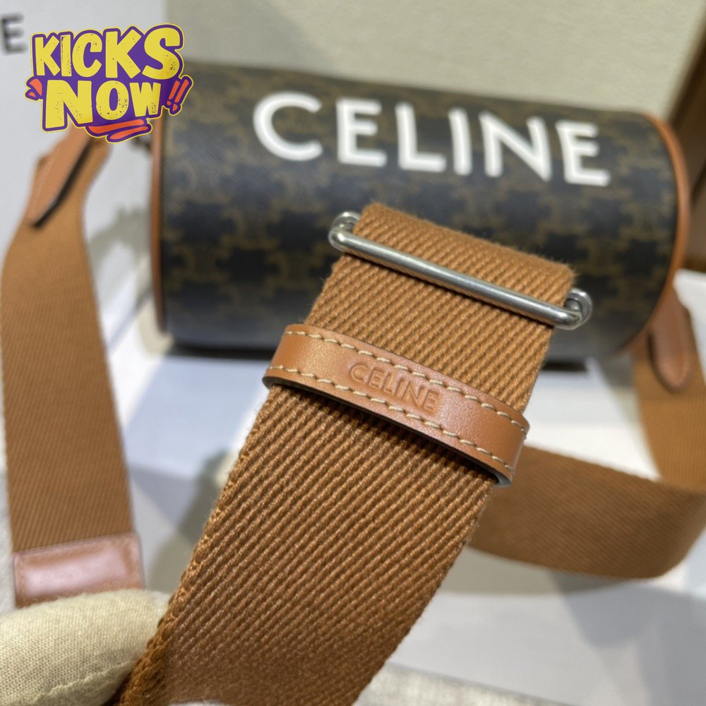 Celine Cylinder Bag In Triomphe Canvas Tan