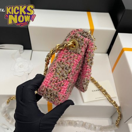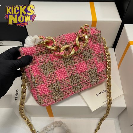 Chanel Small Elegant Chain Flap Bag Pink and Beige Tweed Gold Hardware
