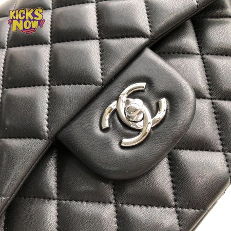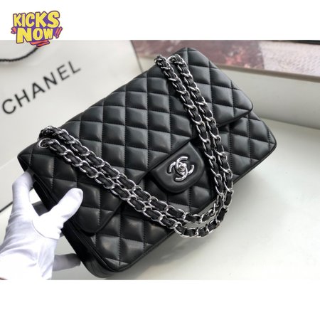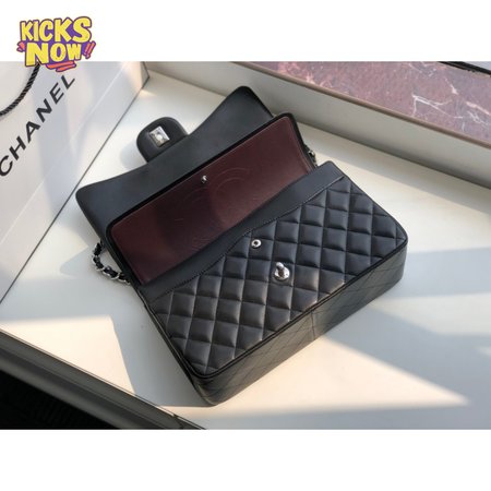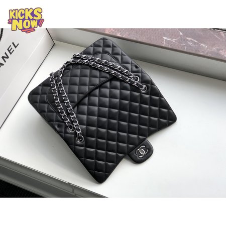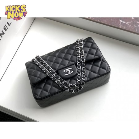 Chanel Classic Double Flap Quilted Lambskin Silver-tone Jumbo Black