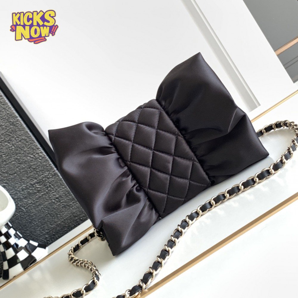 Chanel Clutch Satin & Gold-Tone Metal Black