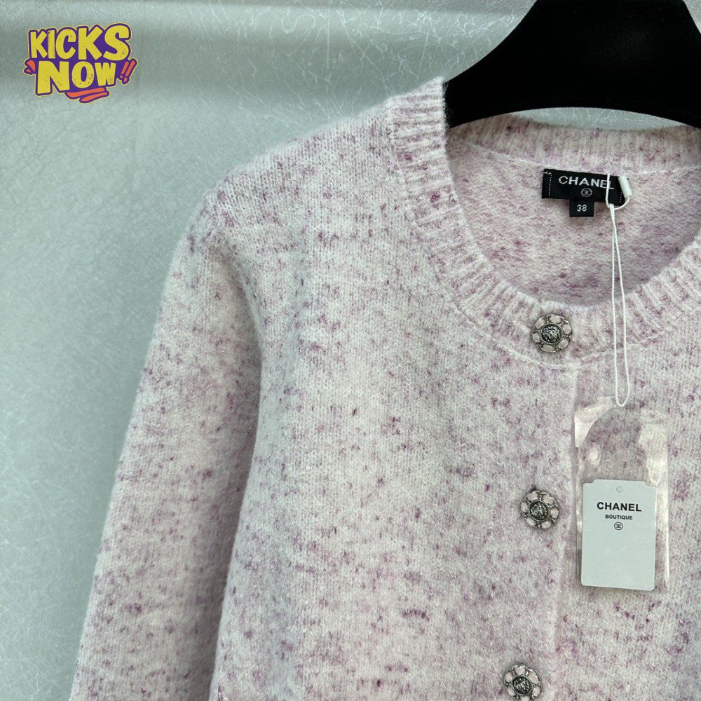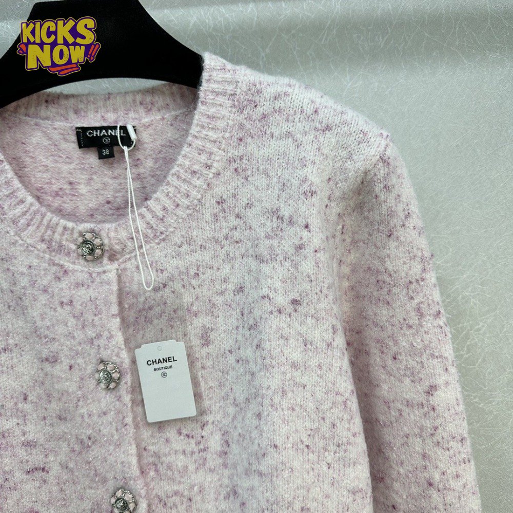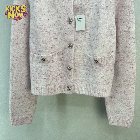 Chanel Pink Round Collar Wool Cardigan Sweater
