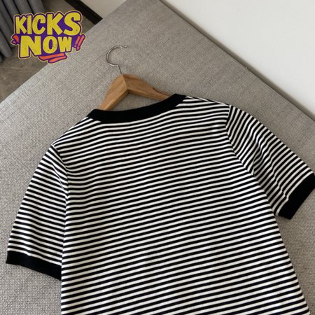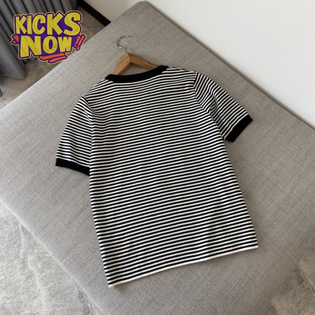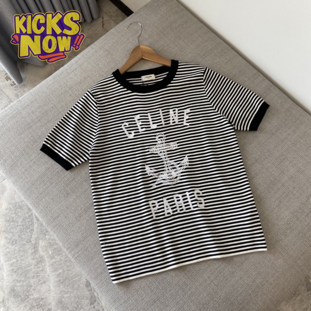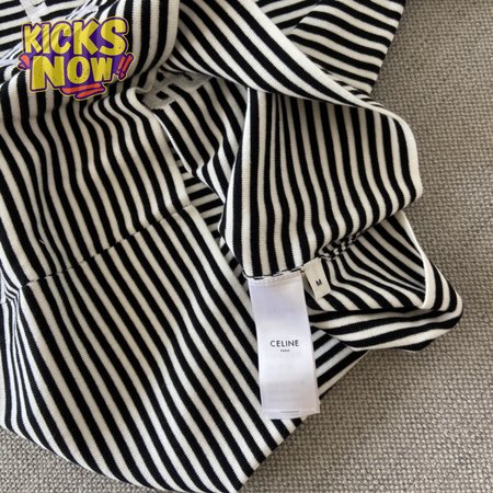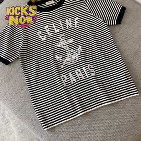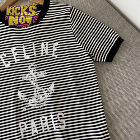 Celine Anchor Striped Jersey 70s Style T-Shirt Fluorescent White/Black