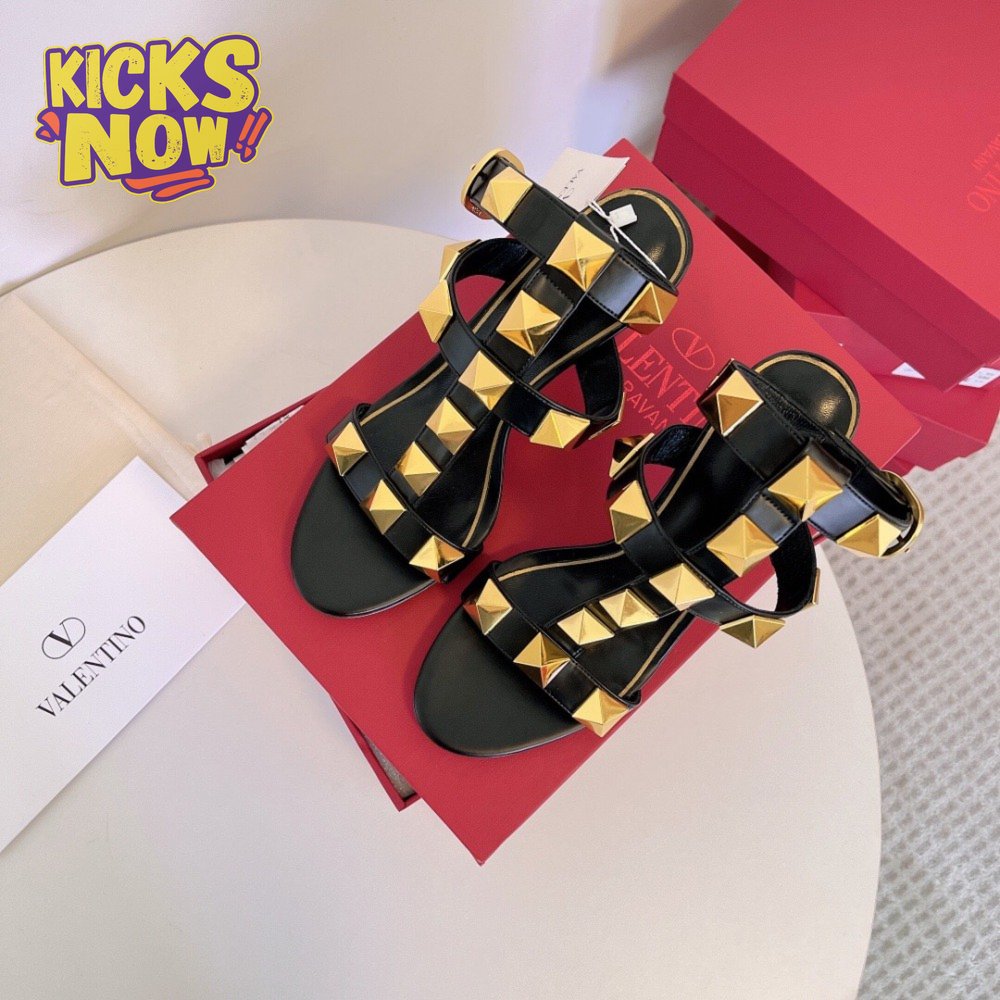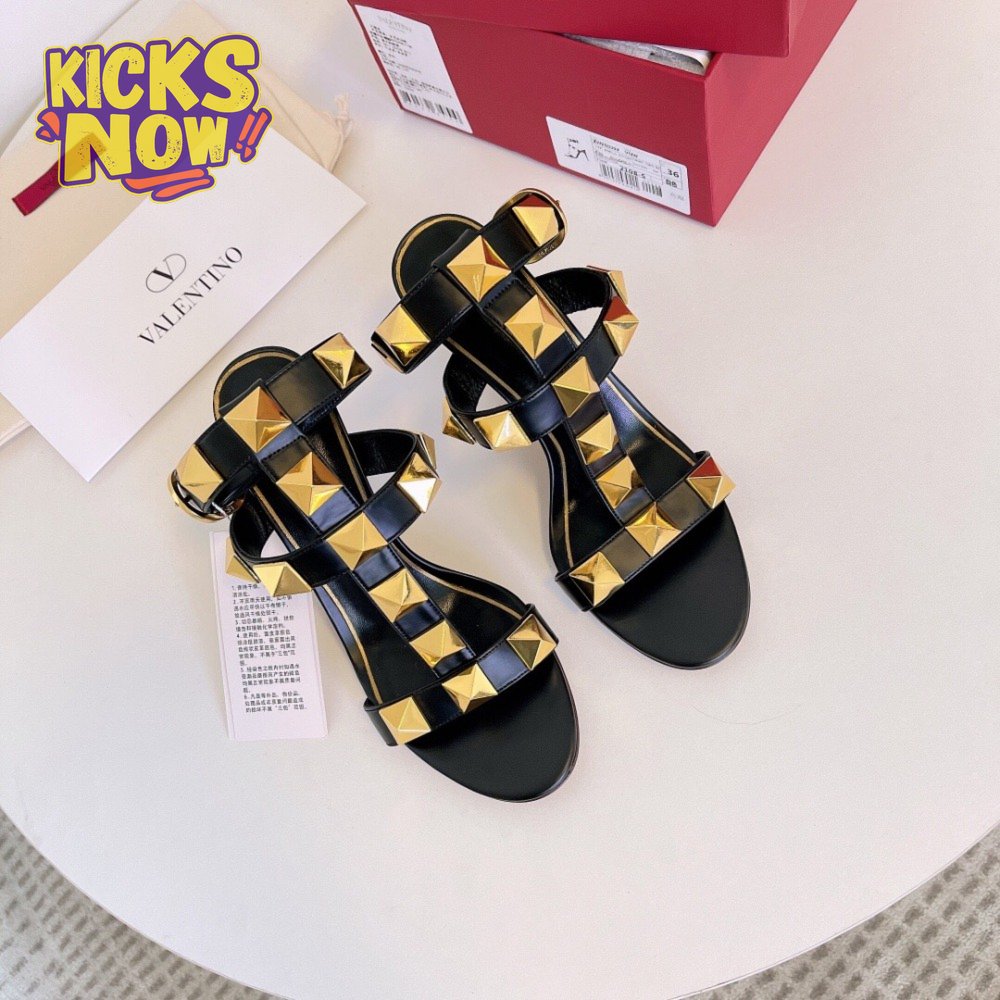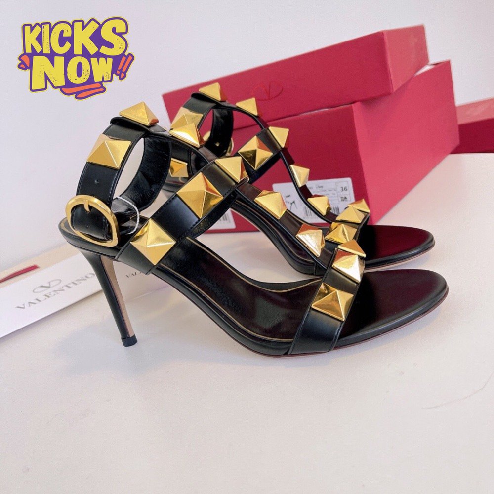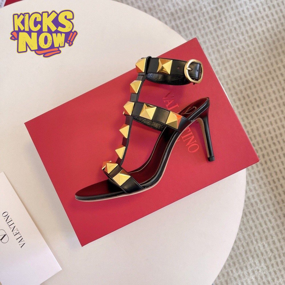 Valentino Roman Stud Calfskin Sandal 100mm Black 35-39