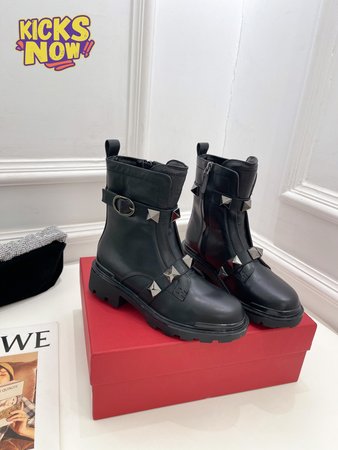 Valentino Roman Stud Calfskin Combat Boot With Tonal Studs 40MM 35-39