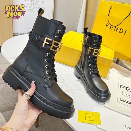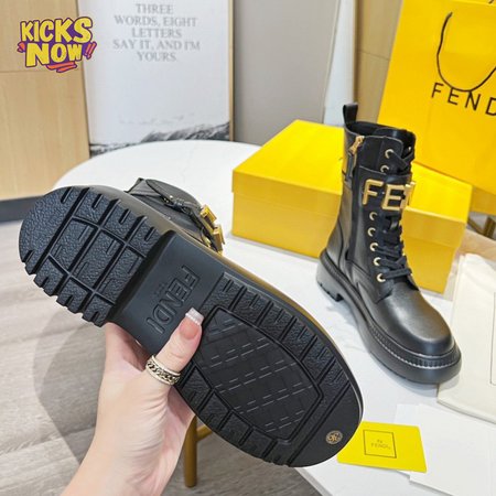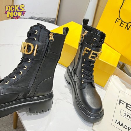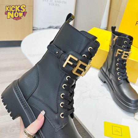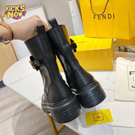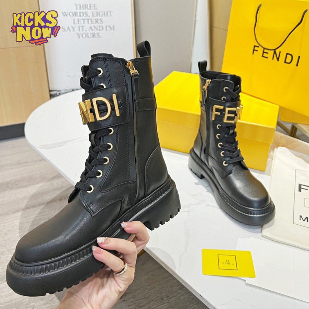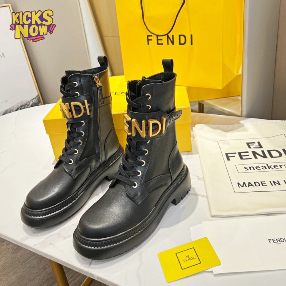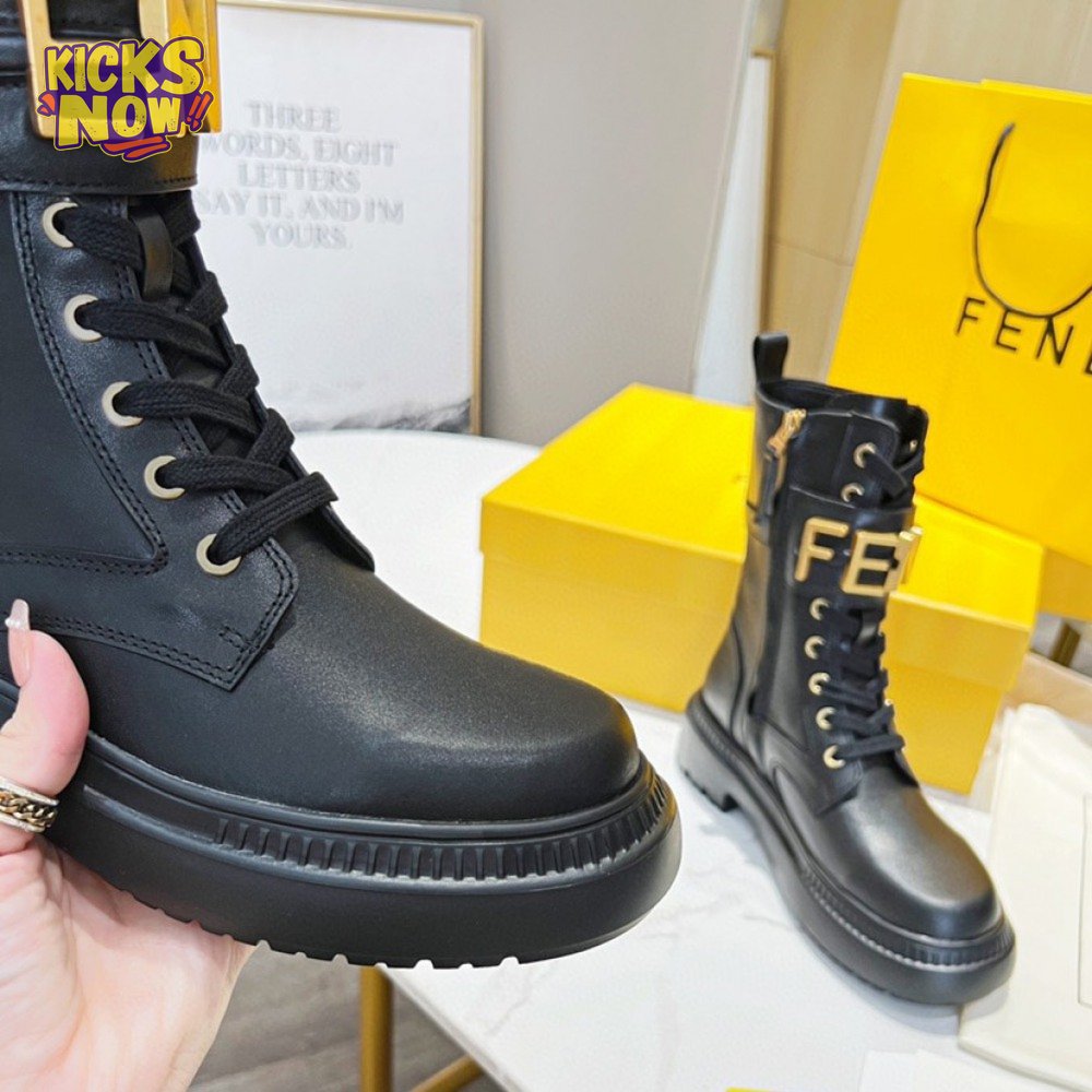 Fendigraphy Black Leather Biker Boots