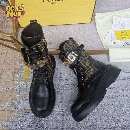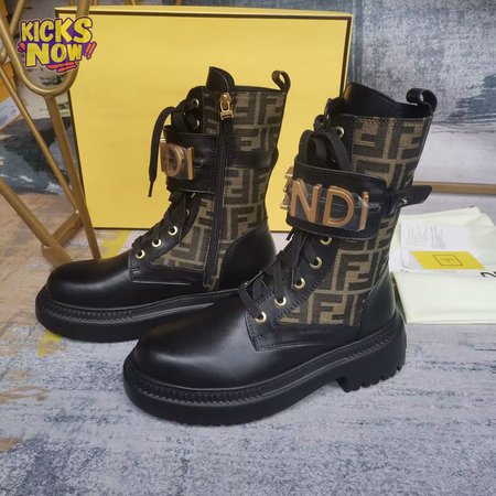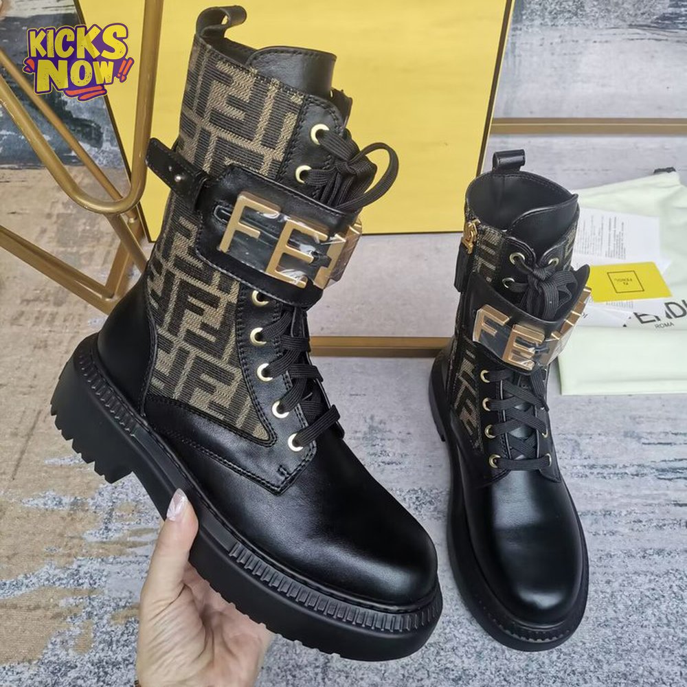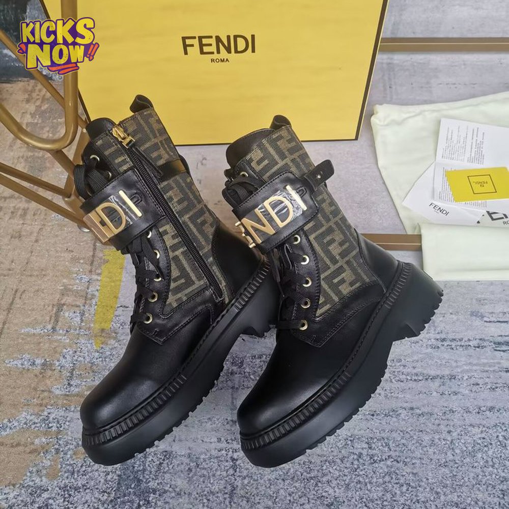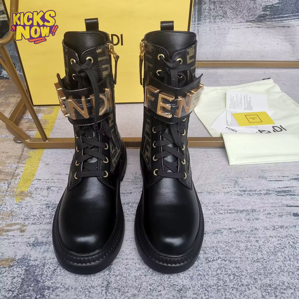 Fendigraphy Black Leather Biker Boots