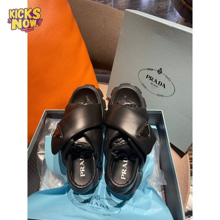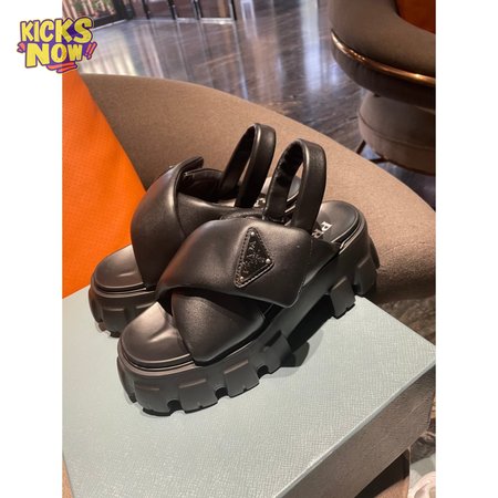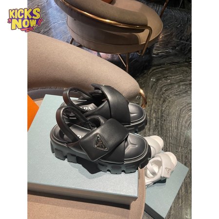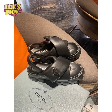 Prada Monolith Logo Patch Chunky Sole Sandals In Black